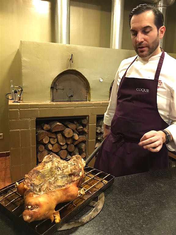 La siguiente parada, antes del menú, es directamente en la cocina donde el Chef nos espera para darnos a conocer los hornos en los que consigue cocinar en mi opinión, el mejor Cochinillo que he probado en mi vida. Tan básico y tan delicioso… ¿El secreto? Que la familia Sandoval lleva más de 60 años haciéndolo.
