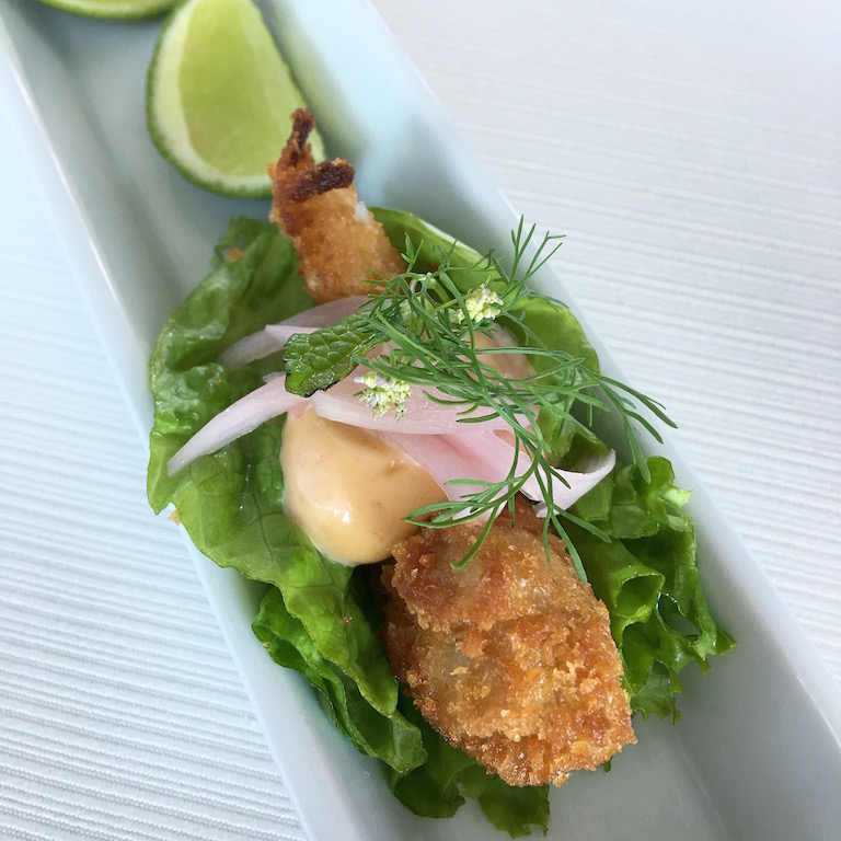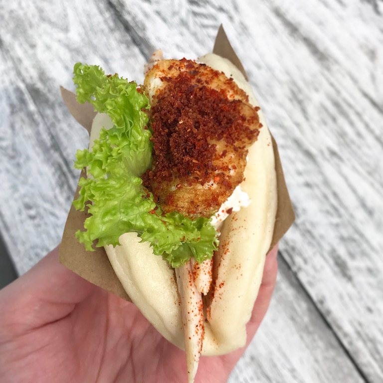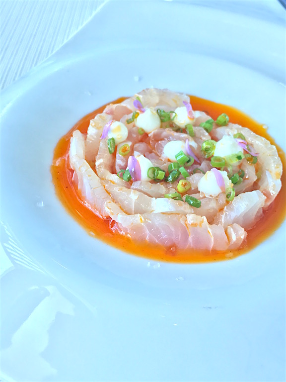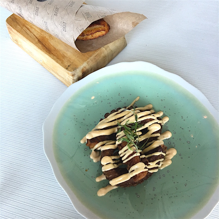 Los platos que nos sorprendieron en nuestra primera visita a Erre Bistro fueron el Tiradito con ajada y alioli, la Ensalada César, el Chicharrón de Pulpo y yuca frita, y el Pan al vapor relleno de Pork Belly encurtidos y hierbas.